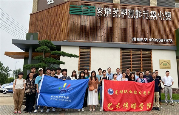 师生们还集体参观了位于花桥镇的芜湖智能托盘小镇,是目前国内规模最大的托盘生产集聚区,现有入驻企业34家,从业人员约1500人。2019年,小镇企业销售托盘近3000万片,创造产值32.3亿元,产量和产值分别约占全国总量的7%和6.9%,实现税收0.6亿元。程文成在介绍中表示希望和艺术传媒学院结成深度合作关系,在智能托盘的包装设计、产品研发的迭代、创新创业大赛等方面充分发挥学校的智力优势。艺术传媒学院领导表示将充分展现职业教育成果,发挥学科专业特色,发动师生开展志愿服务活动,用文化和智力助力乡村振兴。
