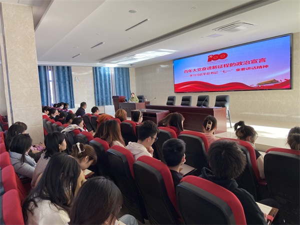 在西河社区党群服务中心会议室,罗珊红以“百年大党奋进新征程的政治宣言”为题,从“七一”讲话的历史地位与重要意义、主要内容和丰富内涵、着力推动习近平总书记“七一”重要讲话精神走深走实走心三个方面,并结合党的十九届六中全会精神进行了宣讲。罗珊红通过回顾中国共产党百年奋斗重大成就和历史经验,深刻阐释了习近平总书记“七一”重要讲话的重大意义、全面建成小康社会的历史性成就、党团结带领人民不懈奋斗的光辉历程和伟大成绩、伟大建党精神的深刻内涵和时代价值、习近平总书记代表党中央发出的伟大号召等内容,对讲话中提出的一系列新的重大思想、重大观点、重大论断进行了深入系统地讲解。罗珊红要求艺术传媒学院全体师生,要不断加强“政治判断力、政治领悟力、政治执行力”,持续发扬“三牛”精神,为学院的专业发展、产教融合、“双高建设”、职教本科创建和建成“专本(硕)一体的芜湖职业技术大学”的目标共同奋进。罗珊红最后对新发展的学生党员提出要求,要认真学习党章党史,熟知党的性质、党的纪律,理解党的初心和使命,明确人生的发展目标,并勉励他们要“树牢理想信念,努力学习本领,践行初心使命,严守党的纪律,敢于善于斗争”,围绕“紫云英人才计划”,主动融入芜湖市经济和社会建设和发展的洪流之中,不负时代、不负韶华,用汗水和奋斗书写青春华章。