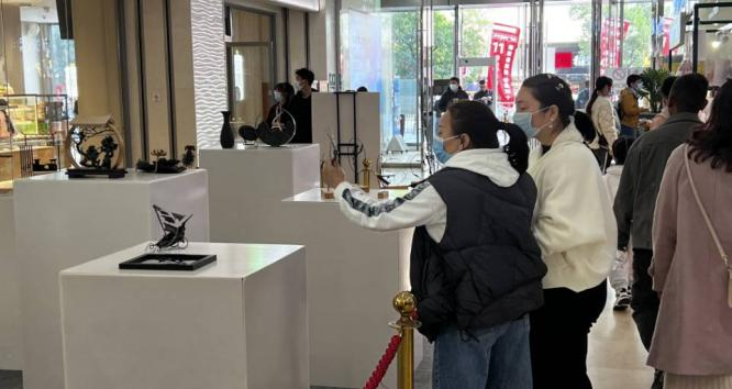 此次展出的文创艺术作品多为学生制作的铁画文创作品,题材丰富,造型多样,实用性与审美兼具,颇有新意。传统非遗工艺和现代元素相结合的铁画作品新奇精美,吸引了众人的目光,大家纷纷驻足观看拍摄,形成了一道亮丽的风景线。