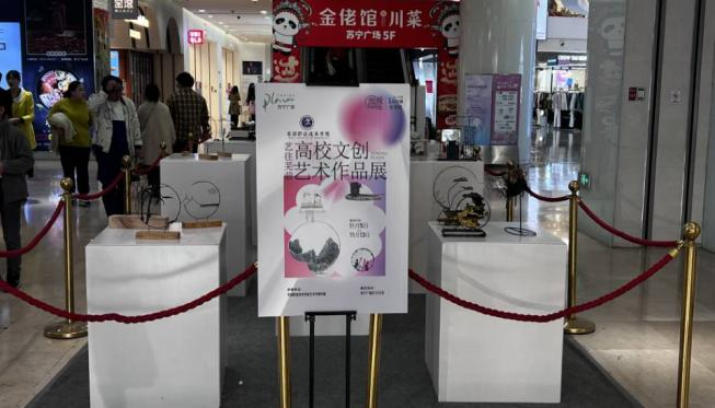 11月5日下午,艺术传媒学院于苏宁广场一楼举办题为“艺往芜前”高校文创艺术作品展,展览为期5天,共展出学生优秀铁画作品60件。