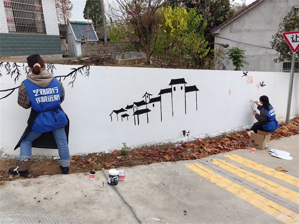 红旗漫卷美如画,墙绘增彩助振兴。为深入学习宣传贯彻党的二十大精神,有效落实“双联双应”,在校团委、党校、易班发展中心和创新创业指导学院的大力支持和协助下,艺术传媒学院学生支部组织师生党员与入党积极分子于11月6日和11月13日赴南陵县烟墩镇红旗村义务绘制墙绘,开展“职教生心中的二十大”主题党日暨“青年红色筑梦之旅”活动。