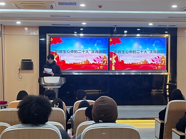为深入学习宣传贯彻党的二十大精神,引导学生畅谈对党的二十大的感想感悟,进一步坚定理想信念,12月1日,艺术传媒学院学生党支部在明德楼205艺术展厅举办了“职教生心中的二十大”主题演讲比赛。