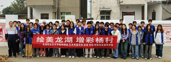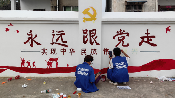 绘图筑梦,增彩乡村。为深入学习宣传贯彻党的二十大精神,有效落实“双联双应”,在校科研处、团委、创新创业指导学院、党校和的大力支持和协助下,10月27日,艺术传媒学院“三下乡”社会实践团队赴弋江区龙湖街道杨村村义务绘制墙绘,用画笔“扮靓”美丽乡村,“画”说乡村文明新风尚。