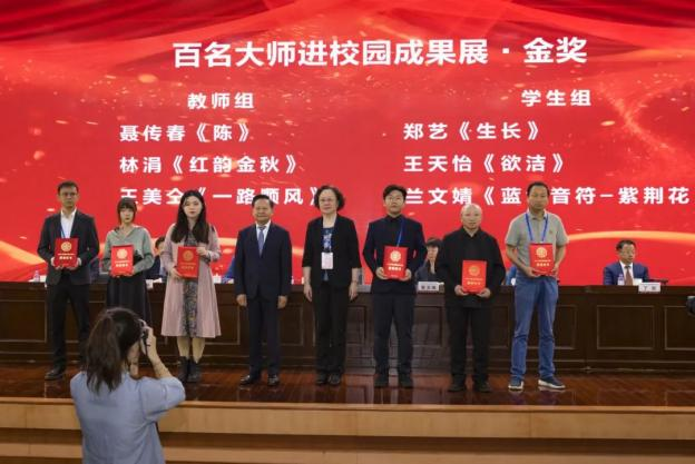 大会同期举办的“百名大师进校园成果展”集中展示大师与院校传承创新优秀成果,共展出286件师生作品,涵盖陶瓷、金属、雕塑、漆器等九个工艺美术品类,充分体现了大师与师生的技艺水平和勇于创新的精神,呈现出院校工艺美术传承创新的新鲜活力。我校聂传春老师铁画艺术作品得到组委会高度认可,喜获大会金奖荣誉。