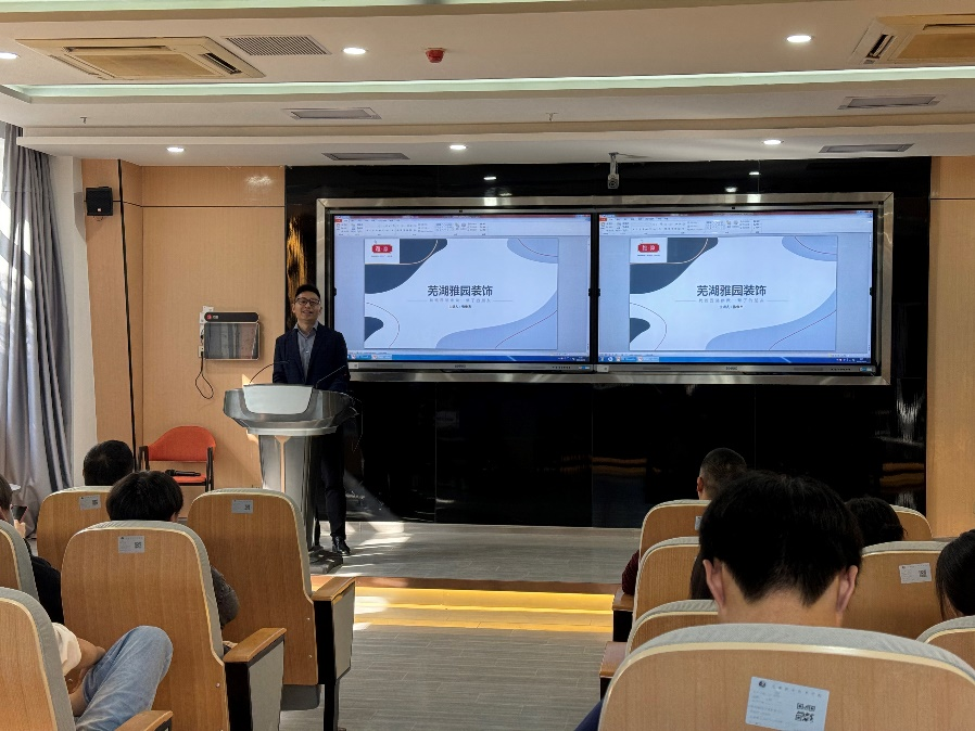 10月31日上午,芜湖雅园装饰公司来到我院进行企业宣讲会。公司负责人张俊杰详细介绍了室内设计领域的新趋势和技术创新,分享了从事这一领域所需的关键技能和见解。其间,同学们与公司进行了积极互动,表示出对装饰行业创意设计、可持续性和与客户合作的热情,并且对公司所提供的实习和就业机会表现出浓厚兴趣。