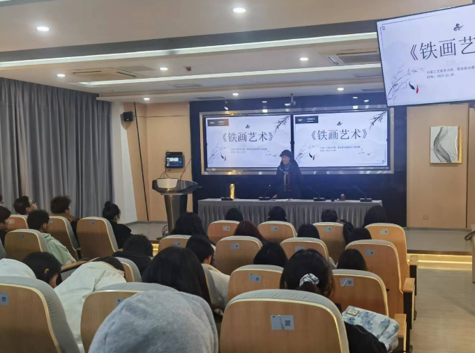 2023年12月28日,国家级非遗传承人、全国工艺美术大师储金霞在艺术传媒学院举办了一场主题为“铁画艺术”的专题讲座,这次独特的讲座为师生们带来了一次沉浸式的艺术体验。