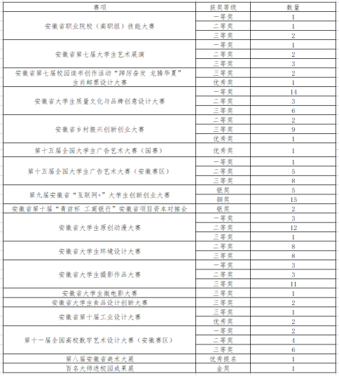 2023年,艺术传媒学院师生在各类专业技能大赛中表现出色,成绩斐然,共荣获154个奖项,其中包括一等奖25项,二等奖40项,三等奖60项。同时,在各类创新创业大赛中,艺术传媒学院的师生也取得了银奖7项,铜奖15项的佳绩。