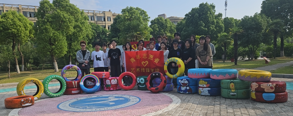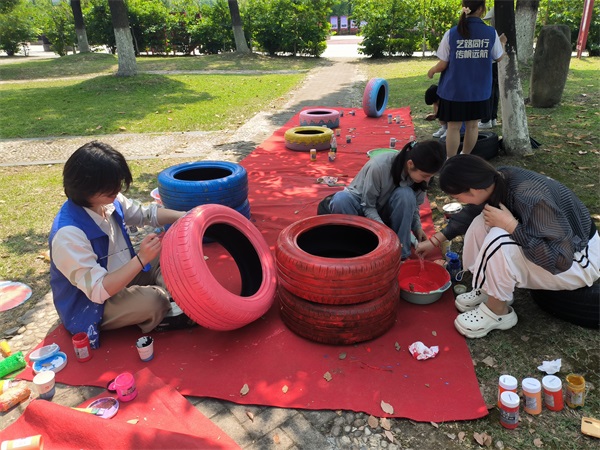 5月25日,在校团委、总务处和创新创业指导学院的大力支持和协助下,艺术传媒学院组织了20余名学生在文津校区彩绘废旧轮胎,美化校园环境,开展了一场别具特色的《美“轮”美奂 绽放“艺”彩》“青马工程”主题艺术实践团课暨“青年红色筑梦之旅”活动。