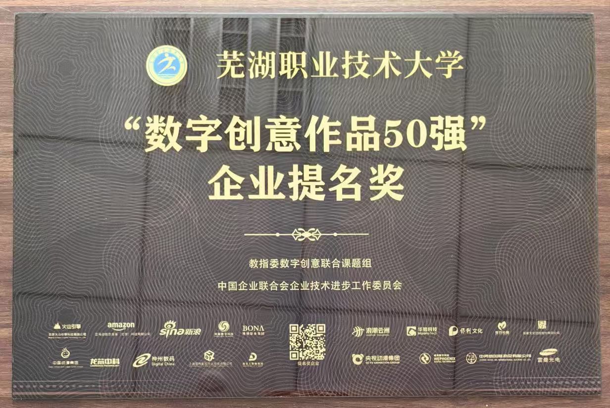 近日,在教育部职业院校艺术设计类专业教学指导委员会主办的“数字设计课题组启动暨全国数字关联企业项目发布大会”上,我校凭借在数字创意教育领域的突出成果和示范引领作用,荣获“数字创意作品50强”企业提名奖。这一荣誉不仅是对我校长期坚持“艺术与技术融合、创意与产业对接”育人理念的高度肯定,也标志着学校在全国数字艺术设计教育中的重要地位进一步提升。