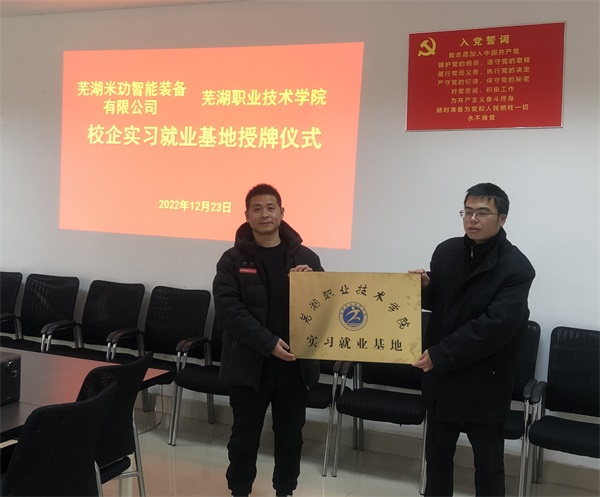周军一行先后在芜湖米玏智能装备有限公司、芜湖市枫丹白露文化传媒有限公司等校友企业进行了深入考察和交流。周军对校友企业取得的成绩表示了祝贺和充分肯定,同时也介绍了学院近期的发展、毕业生就业等情况,表示校友与学院始终是发展共同体,就深化全面合作、共建就业实习基地、推动产教融合等方面积极发挥学科专业优势,进一步开展多层次、多形式、全方位的合作,优势互补、资源共享、互利共赢,共同培养符合社会需求的人才;希望通过走访,为广大校友搭建优质的合作交流与服务平台,与校友携手并进、探索多元合作,实现协同发展,;同时通过此次走访积极了解企业人才需求情况,使学院真正成为毕业生从校园到社会的桥梁和引航员。芜湖米玏智能装备有限公司负责人王建才校友和芜湖市枫丹白露文化传媒有限公司法人张洪校友均表示希望能与学院在人才输送、就业实习等方面建立良好的合作关系,为母校毕业生提供更多的优质的就业岗位,切实助力母校人才培养和专业建设。在走访调研中,还进行了学校“就业实习基地”授牌仪式,并向校友颁发了艺术传媒学院“就业创业指导教师”聘书。